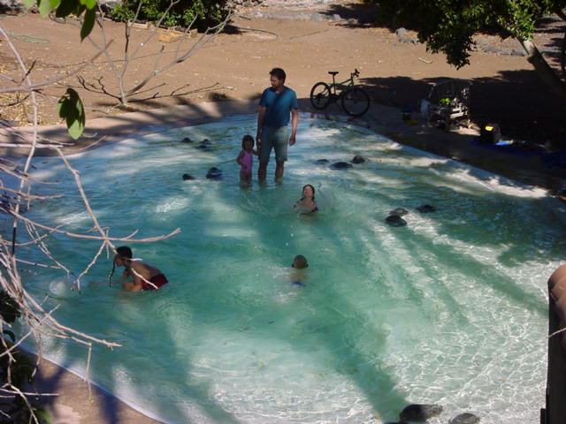 Für unsere Jüngsten gibt es seit kurzem nun auch ein Naturschwimmbecken auf zwei Ebenen, in dem auch Größere immer noch viel Spaß zu haben scheinen. Gleich nebenan gibt es ebenfalls unter Lorbeerbäumen ein neues Volleyballfeld. Beide sind gelegen ganz in der Nähe des Herrenhauses, in dem neben einer großen Bibliothek Einzelzimmer und Doppelzimmer für Gäste zur Verfügung stehen.